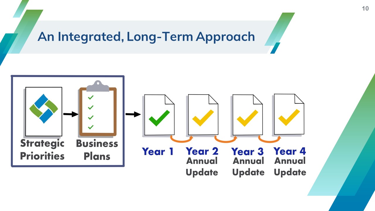Linking Councils strategic priorities to the departmental business plans and subsequently the adoption of a 4-year budget creates an integrated, long-term approach aligning Council’s strategic priorities to funding plans for implementation. The implementation of multi-year budgets is not a one-time exercise, but one that must reviewed and adopted annually through the annual budget updates. Switching to a multi-year budget provides the residents of Chatham-Kent with greater certainty of their future taxes along with the implementation timelines of Councils strategic plan. For details on Chatham-Kent's implementation of a multi-year budget please see the Multi-Year Budget presentation and the Report to Council in the Additional Information section on the right.