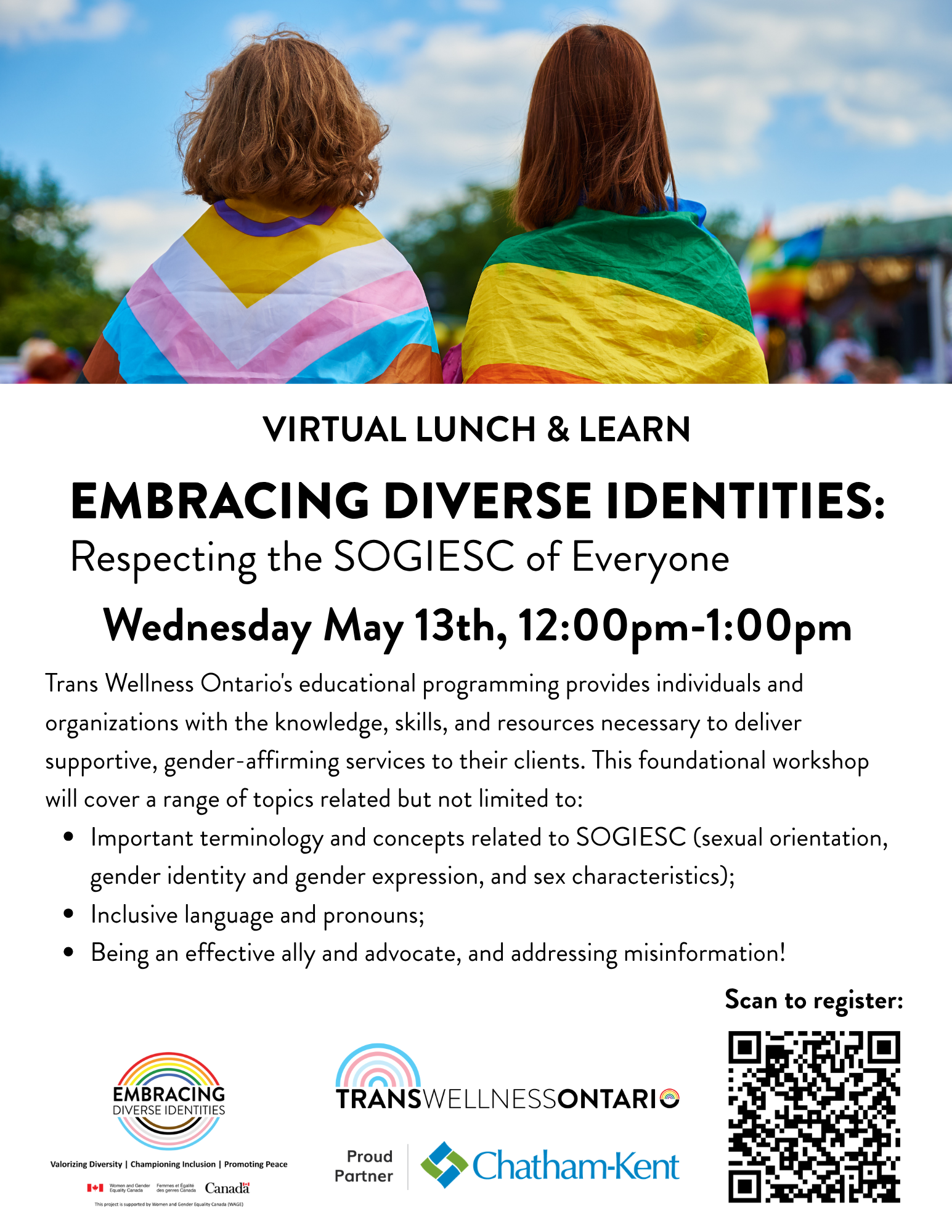 Wednesday May 13, 12:00 - 1:00 PM, Embracing Diverse Identities: Respecting the SOGIESC of Everyone