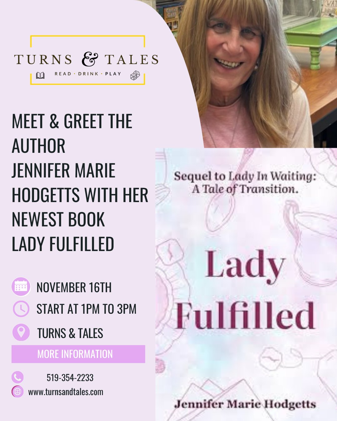 Meet and green the author Jennifer Marie Hodgetts with her newest book, Lady Fulfilled.