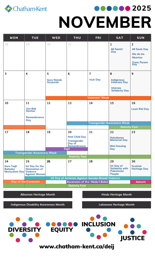 This Website shares information about the Municipality of Chatham-Kent's Diversity, Equity, Inclusion, and Justice (DEIJ) Strategy.
