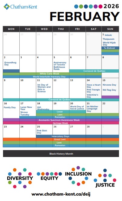 This Website shares information about the Municipality of Chatham-Kent's Diversity, Equity, Inclusion, and Justice (DEIJ) Strategy.